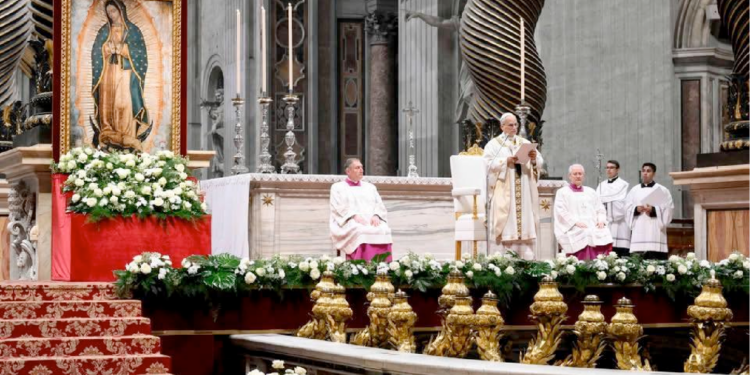 (ZENIT Noticias / Ciudad del Vaticano, 12.12.2025).- Por la tarde del viernes 12 de diciembre, el Papa León XIV presidió la solemne concelebración eucarística en la basílica de San Pedro, en ocasión de la fiesta de la Virgen de Guadalupe, patrona de América y Filipinas. En la misa estuvieron presentes numerosos fieles de diversos países de América latina, especialmente de México. Ofrecemos a continuación la homilía del Santo Padre: