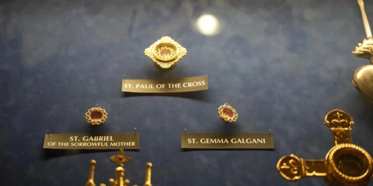 La reliquia de Santa Gemma Galgani reposa en el relicario del Newman Center de la Universidad de Nebraska-Lincoln, miércoles 8 de octubre de 2025. / Crédito: Corbin Hubbell.