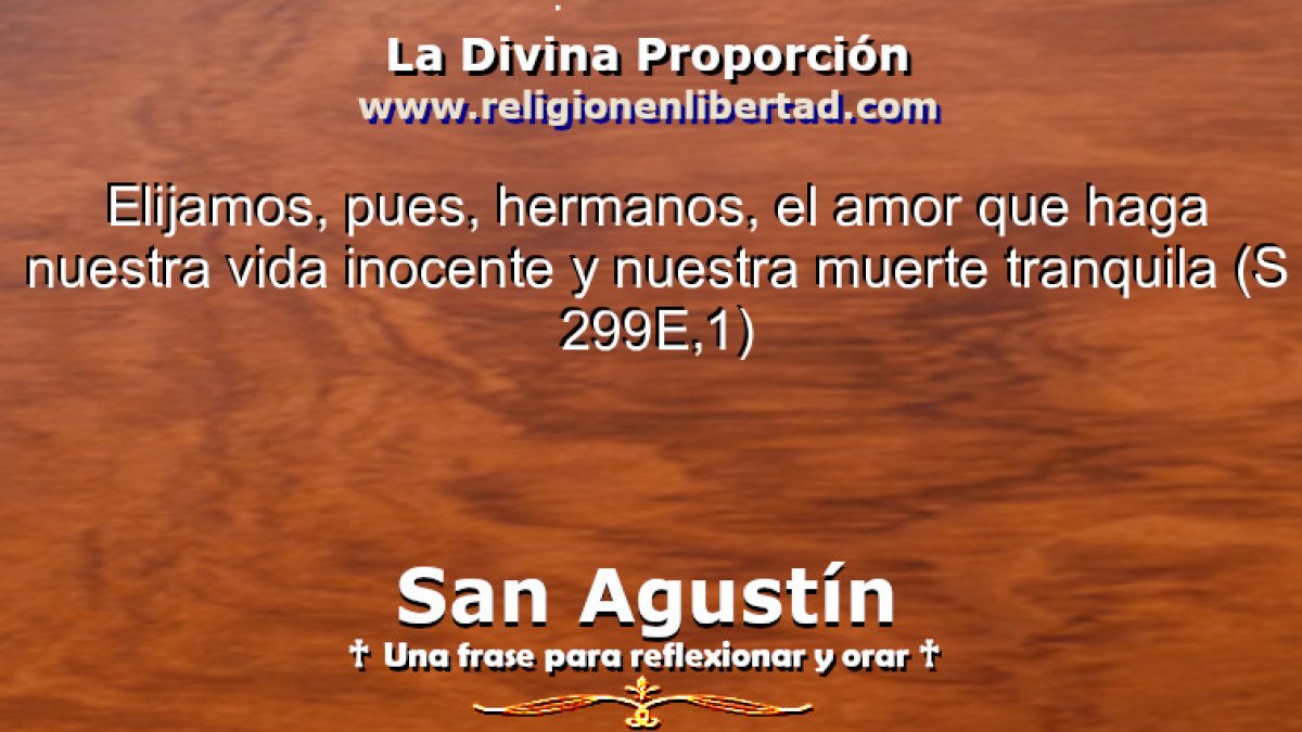 Elijamos, pues, hermanos, el amor que haga nuestra vida inocente y nuestra muerte tranquila 🔹San Agustín. 299E, 1🔹