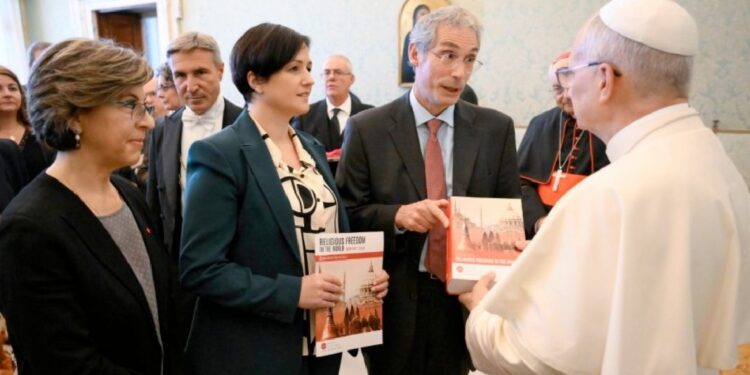 (ZENIT Noticias / Ciudad del Vaticano, 11.11.2025).- Por la mañana del viernes 10 de octubre, en la Sala Clementina del Palacio Apostólico, el Papa León XIV recibió en audiencia, en la Sala de los Papas, a algunos representantes de la Fundación Pontificia Ayuda a la Iglesia Necesitada. Ofrecemos a continuación la traducción al castellano que ZENIT hizo de las palabras del Papa, centrado en torno a la libertad religiosa.