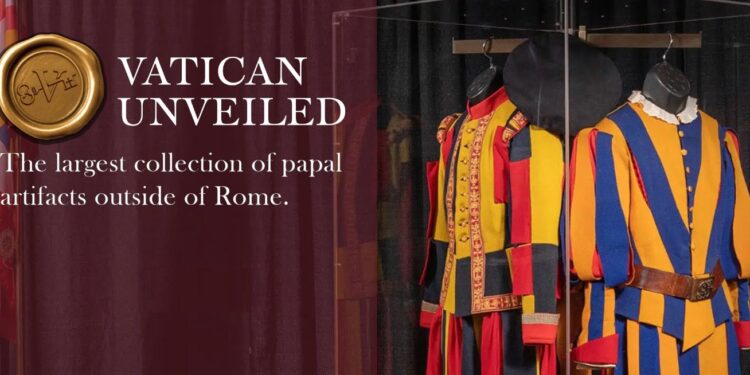 La exposición “Vaticano Revelado” presenta aproximadamente 300 objetos históricos, incluyendo el micrófono de radio del Papa Pío XII, un anillo papal y un raro uniforme de la Guardia Suiza.
