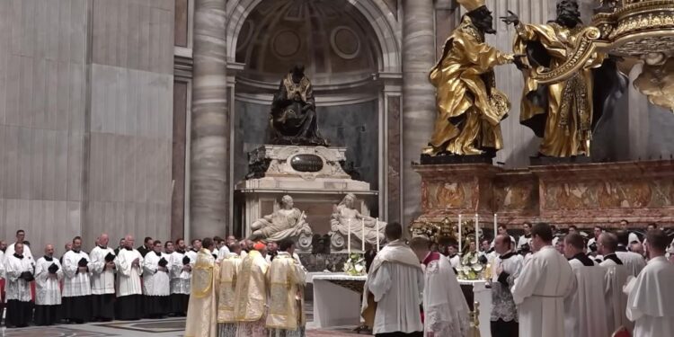 [1:49] Este sábado 25 de octubre, el cardenal Raymond Leo Burke celebró misa tradicional en el Altar de la Cátedra de la basílica de San Pedro. Es la primera que se dice allí desde las restricciones introducidas en 2021 por el motu proprio Traditionis Custodes. El vídeo refleja el momento de la Salve Regina final.