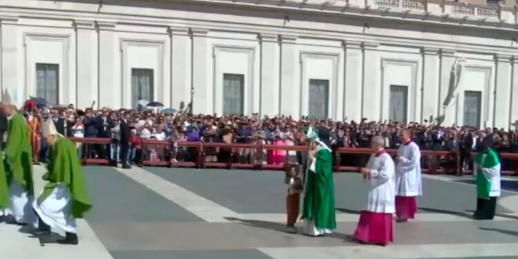 El Papa León XIV bendice a una niña en la Plaza de San Pedro. / Crédito: Vatican Media.