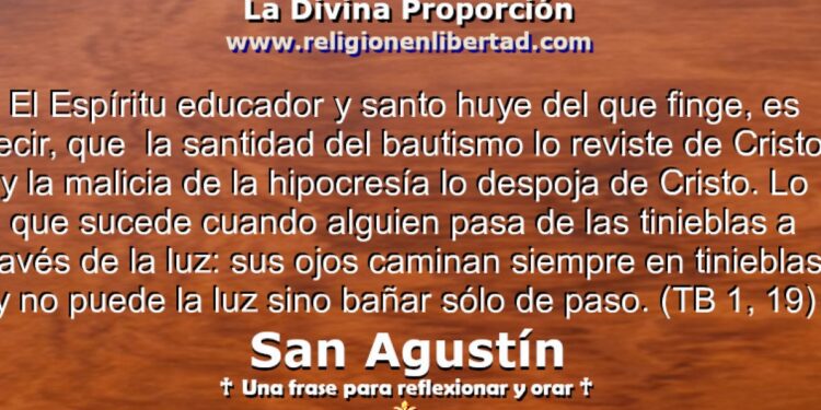 El Espíritu educador y santo huye del que finge, es decir, que la santidad del bautismo lo reviste de Cristo, y la malicia de la hipocresía lo despoja de Cristo. Lo que sucede cuando alguien pasa de las tinieblas a través de la luz: sus ojos caminan siempre en tinieblas, y no puede la luz sino bañar sólo de paso. 🔹San Agustín. Tratado sobre el Bautismo 1, 19🔹