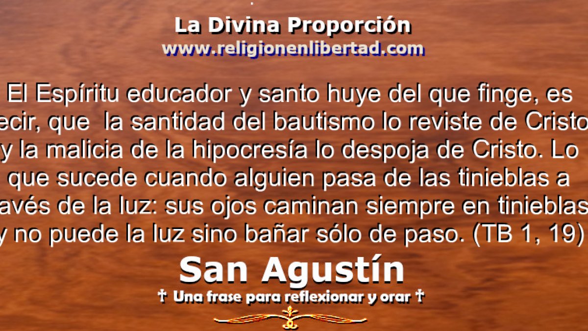 El Espíritu educador y santo huye del que finge, es decir, que la santidad del bautismo lo reviste de Cristo, y la malicia de la hipocresía lo despoja de Cristo. Lo que sucede cuando alguien pasa de las tinieblas a través de la luz: sus ojos caminan siempre en tinieblas, y no puede la luz sino bañar sólo de paso. 🔹San Agustín. Tratado sobre el Bautismo 1, 19🔹