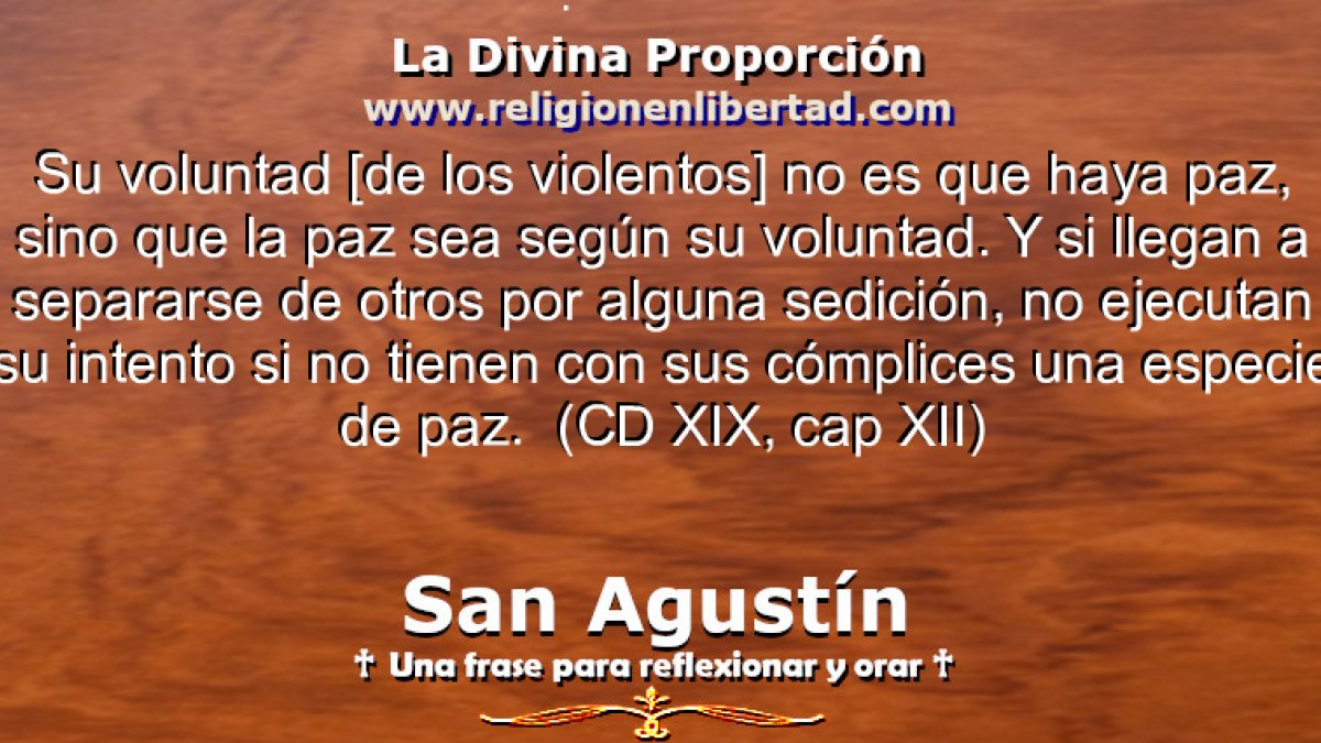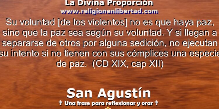 Su voluntad [de los violentos] no es que haya paz, sino que la paz sea según su voluntad. Y si llegan a separarse de otros por alguna sedición, no ejecutan su intento si no tienen, con sus cómplices, una especie de paz 🔹San Agustín. La Ciudad de Dios XIX, cap XII🔹