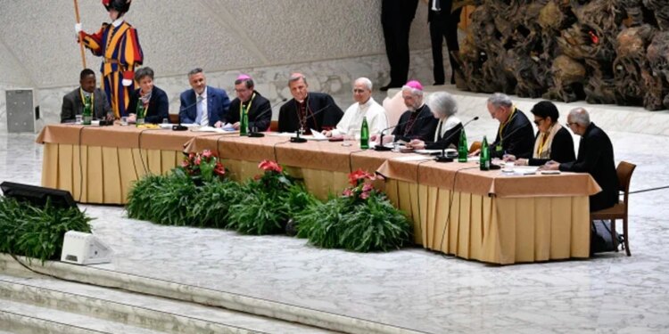 El Papa León XIV se dirige a los participantes del Jubileo de los Equipos Sinodales y Órganos de Participación el 24 de octubre de 2025, en el Aula Pablo VI del Vaticano. / Crédito: Vatican Media
