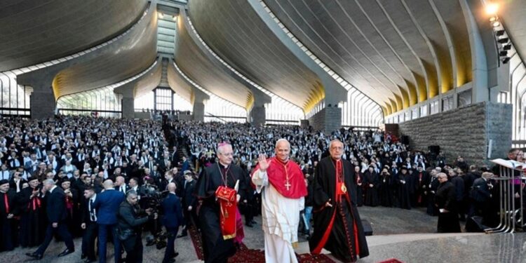 El Papa visitó este lunes el santuario mariano de Harissa para reunirse con los obispos, sacerdotes, religiosos y consagrados del Líbano.