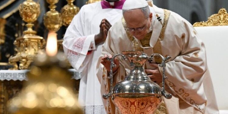 El Papa León XIV ha presidido en la mañana del Jueves Santo su primera Misa Crismal como Pontífice, ocasión en la que se bendicen los santos óleos que se usan durante todo el año, en una ceremonia a la que acuden sacerdotes de toda la diócesis de Roma para renovar sus promesas sacerdotales.