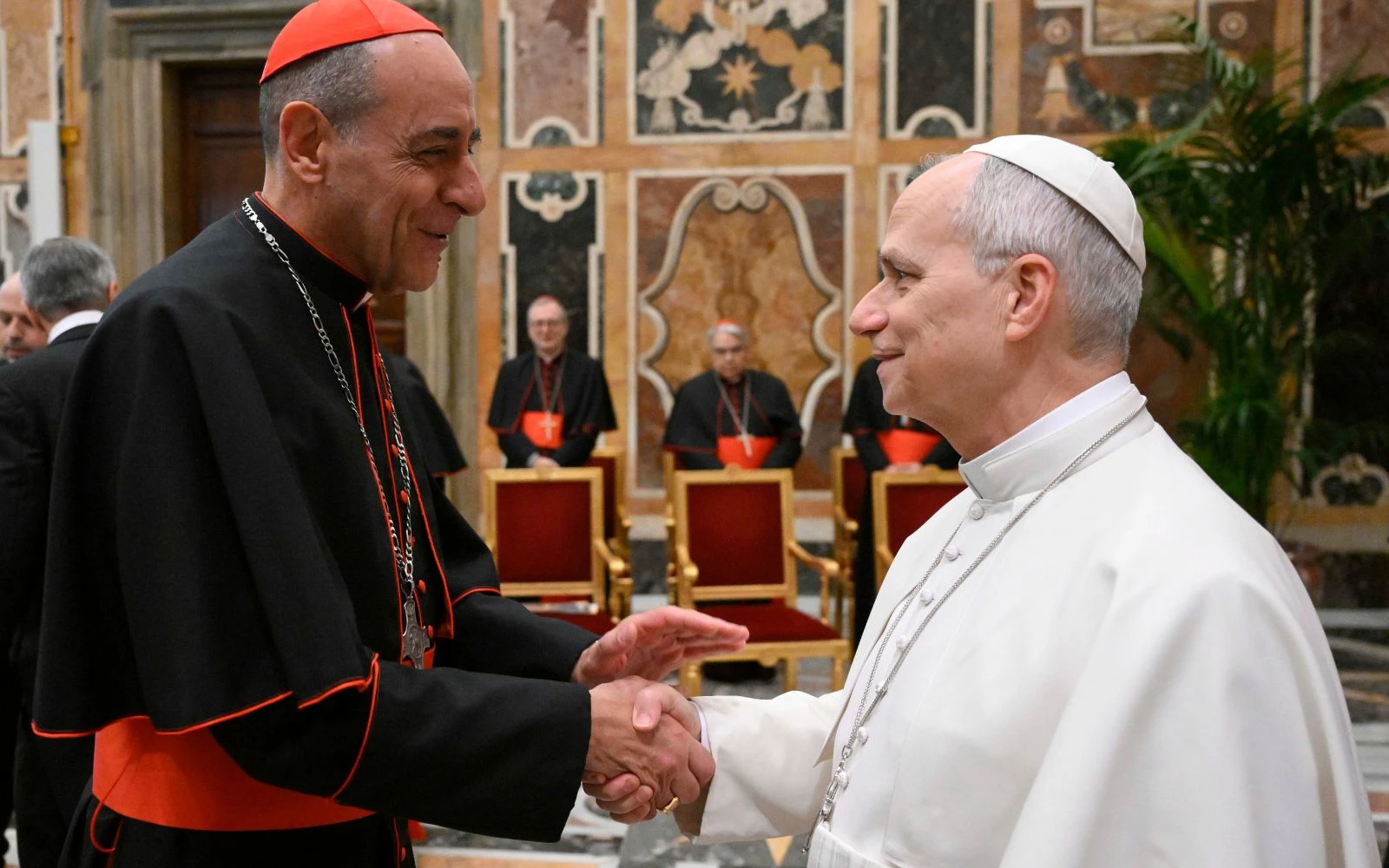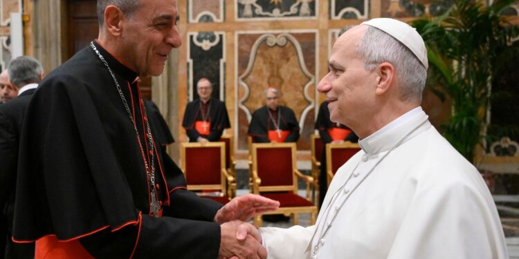 El Papa León XIV saluda al prefecto del Dicasterio para la Doctrina de la Fe, el Cardenal Víctor Manuel Fernández / Crédito: Vatican Media