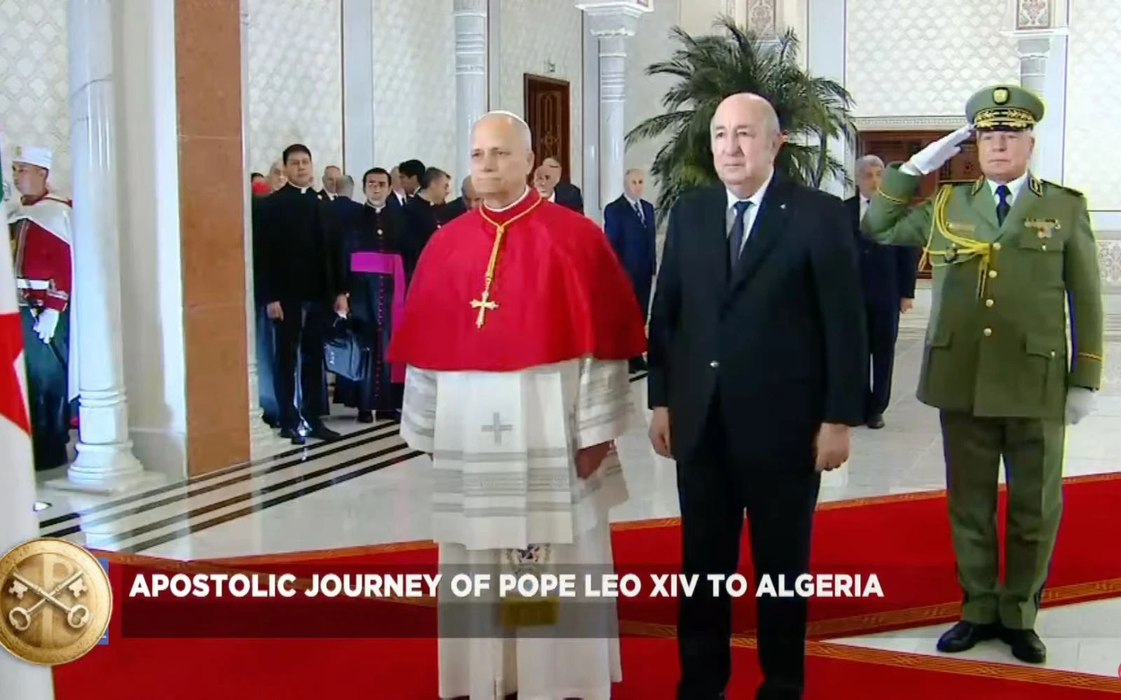 El Papa León XVI es recibido a su llegada a Algeria, este 13 de abril de 2026. / Crédito: Captura de video/EWTN.