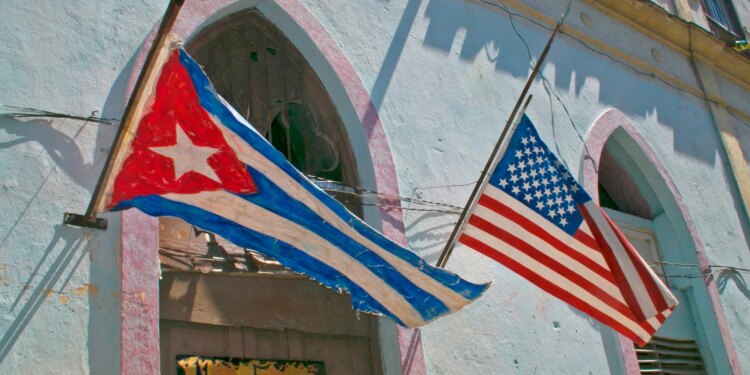 Banderas de Cuba y de Estados Unidos. / Crédito: S Warrenphotography / Shutterstock.