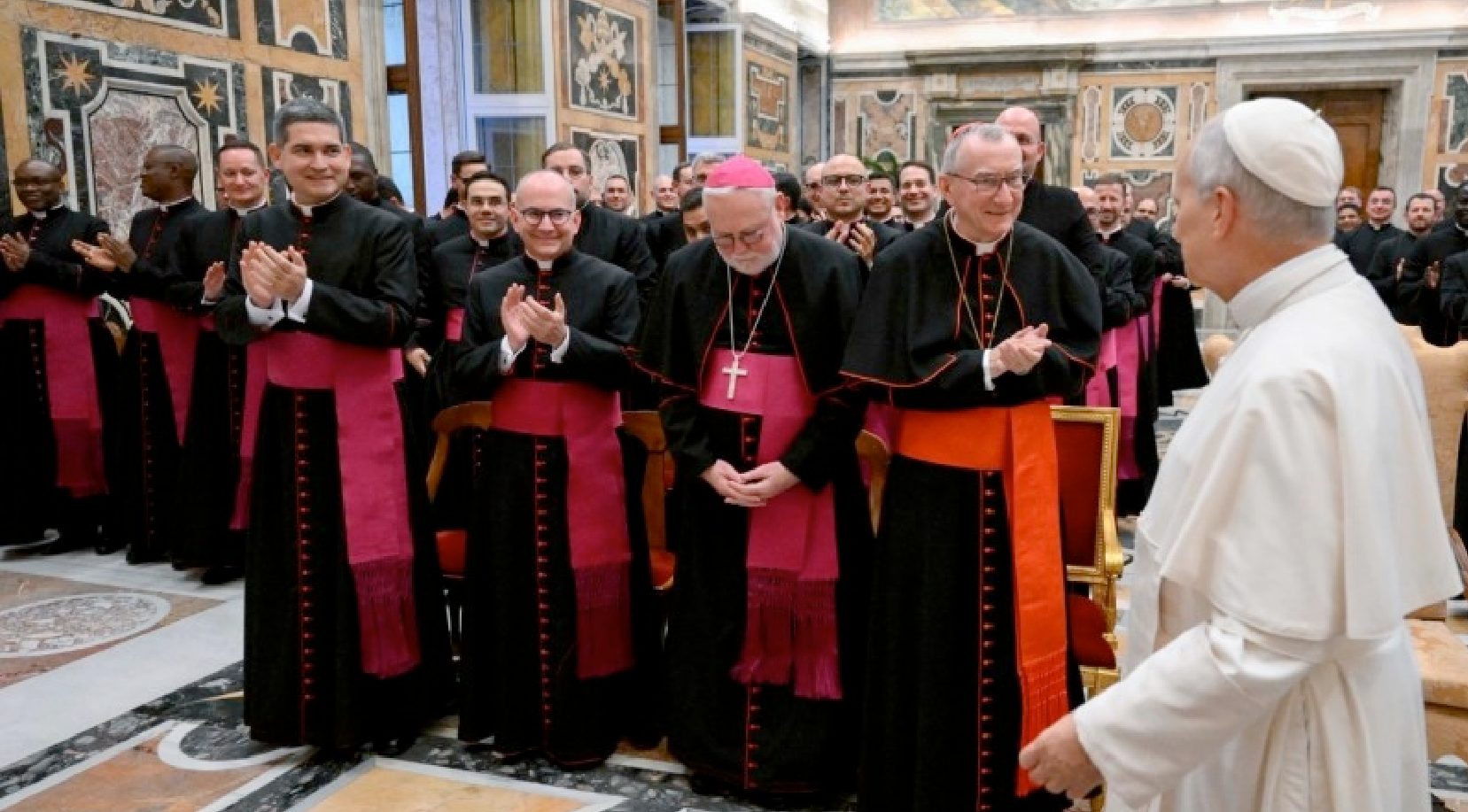(ZENIT Noticias / Ciudad del Vaticano, 18.11.2025).- Personal diplomático de la Santa Sede, en su mayoría sacerdotes con funciones diplomáticas, fue recibido en audiencia pontificia el lunes 17 de noviembre en la Sala Clementina del Palacio Apostólico. El encuentro tenía lugar en el contexto de una jornada de oración y diálogo organizada y promovida por la Secretaría de Estado. Muchos de estos sacerdotes que ya trabajan en las diferentes Nunciaturas (embajadas) de la Santa Sede en el mundo, serán los futuros nuncios del Papa. A continuación la traducción realizada por ZENIT de las palabras del Papa: