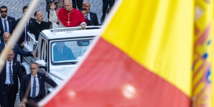 El Papa León XIV visto junto a la bandera de España el 8 de diciembre de 2025 / Crédito: Daniel Ibáñez / EWTN News.