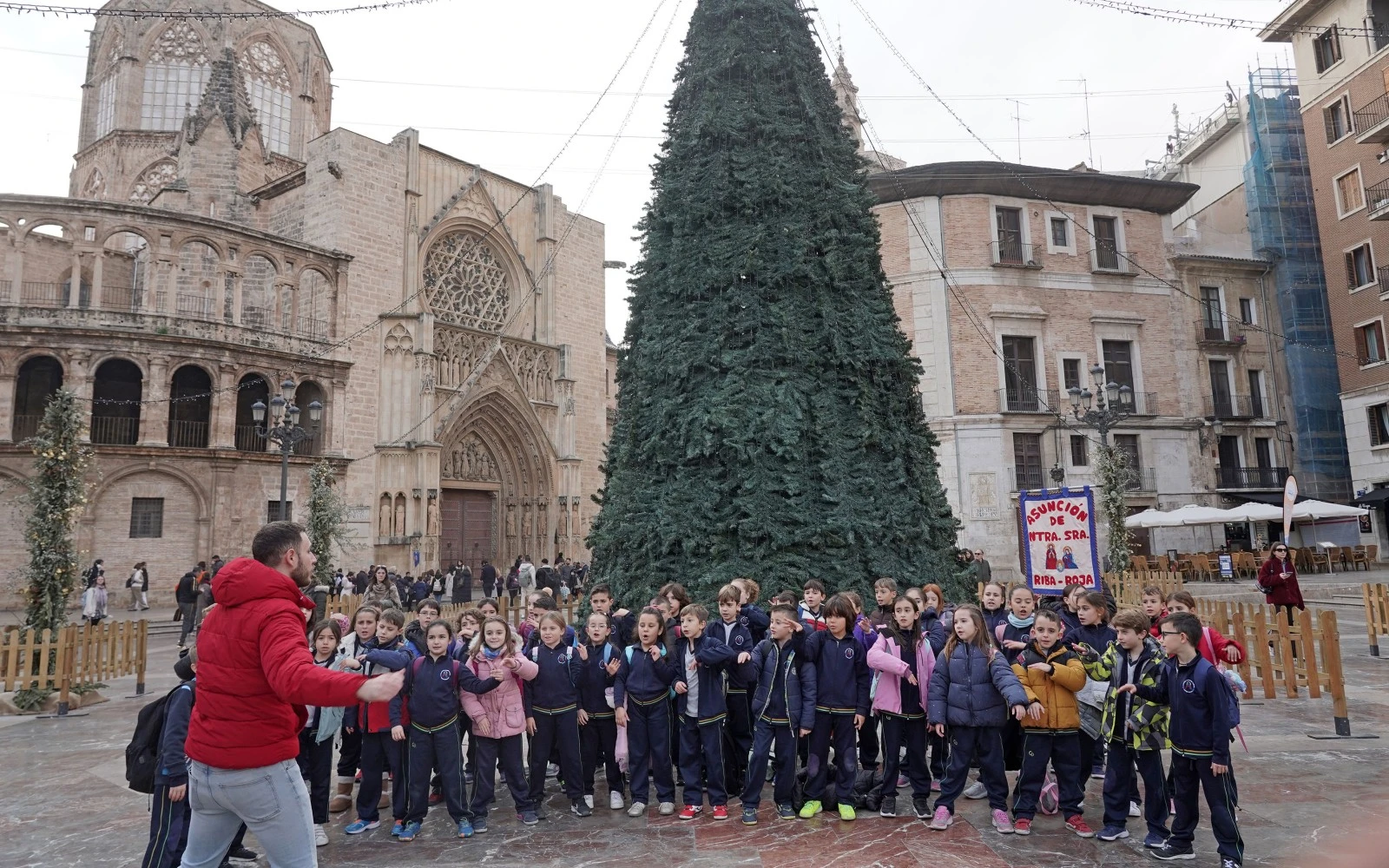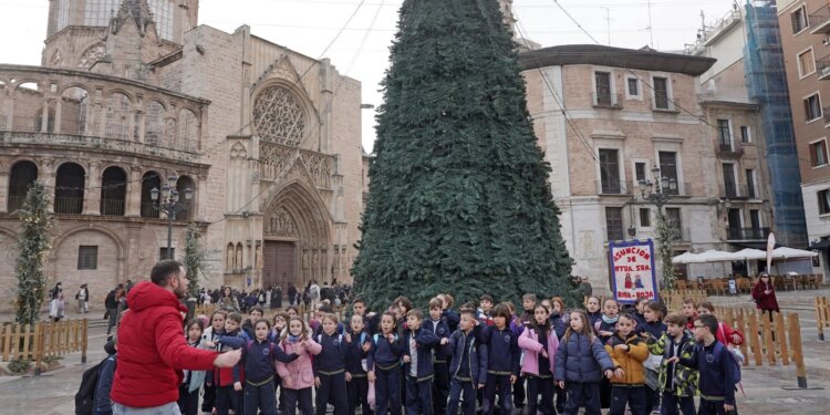Este viernes 12 de diciembre más de mil de alumnos de 25 colegios de Valencia (España) se han concentrado en los alrededores de la Catedral para cantar villancicos convocados por la Archidiócesis de Valencia.