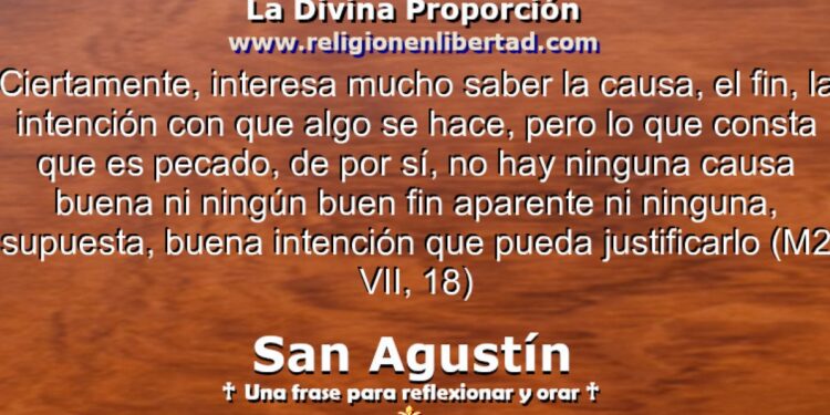 Ciertamente, interesa mucho saber la causa, el fin, la intención con que algo se hace, pero lo que consta que es pecado, de por sí, no hay ninguna causa buena ni ningún buen fin aparente ni ninguna, supuesta, buena intención que pueda justificarlo 🔹San Agustín. Contra la mentira VII, 18🔹