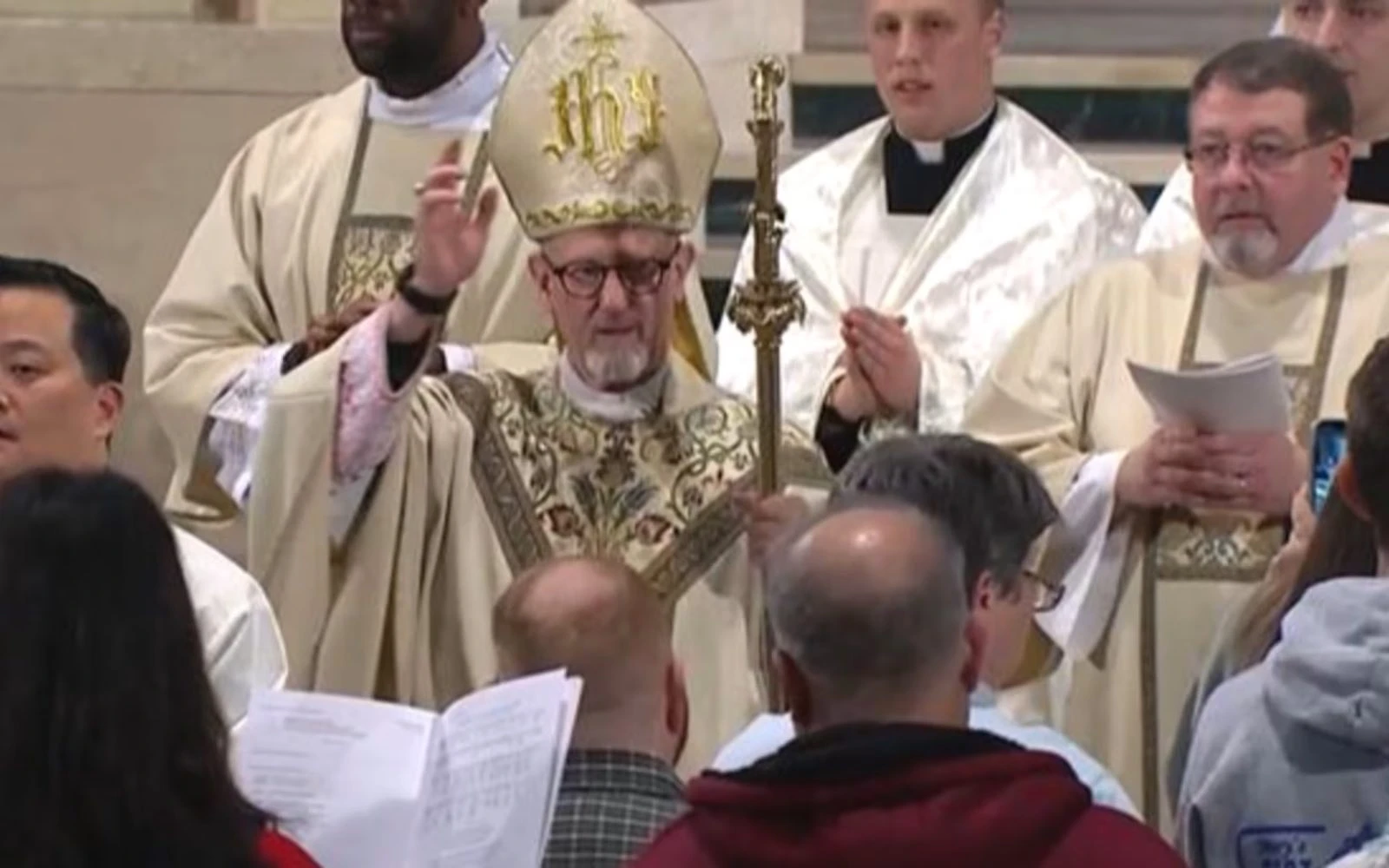 El obispo James D. Conley de la Diócesis de Lincoln, Nebraska (Estados Unidos), celebró la Misa en la Vigilia Nacional de Oración por la Vida en el Santuario Nacional de la Inmaculada Concepción en Washington, D.C., el jueves 22 de enero. / Crédito: EWTN.