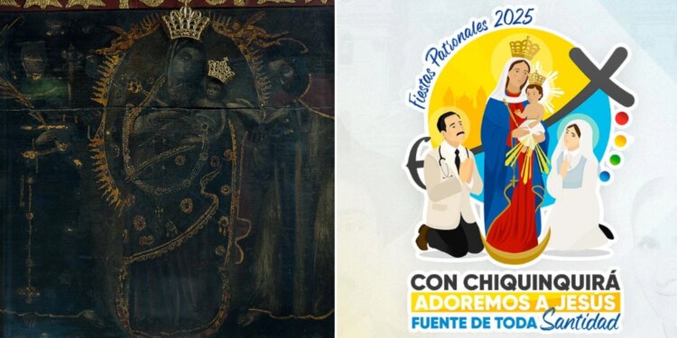 Reliquia sagrada de la Virgen de Chiquinquirá (izq.) y logo oficial de las celebraciones de este año (der.) / Crédito: Wilfredor, vía Wikimedia Commons (CC0). Arquidiócesis de Maracaibo, Basílica de Nuestra Señora de Chiquinquirá.