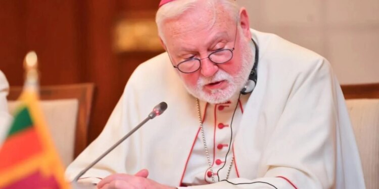 El arzobispo Paul Richard Gallagher, Secretario para las Relaciones con los Estados de la Santa Sede, habla en una conferencia de prensa el 4 de noviembre de 2025 en Colombo./Imagen referencial. / Crédito: Santosh Digal.