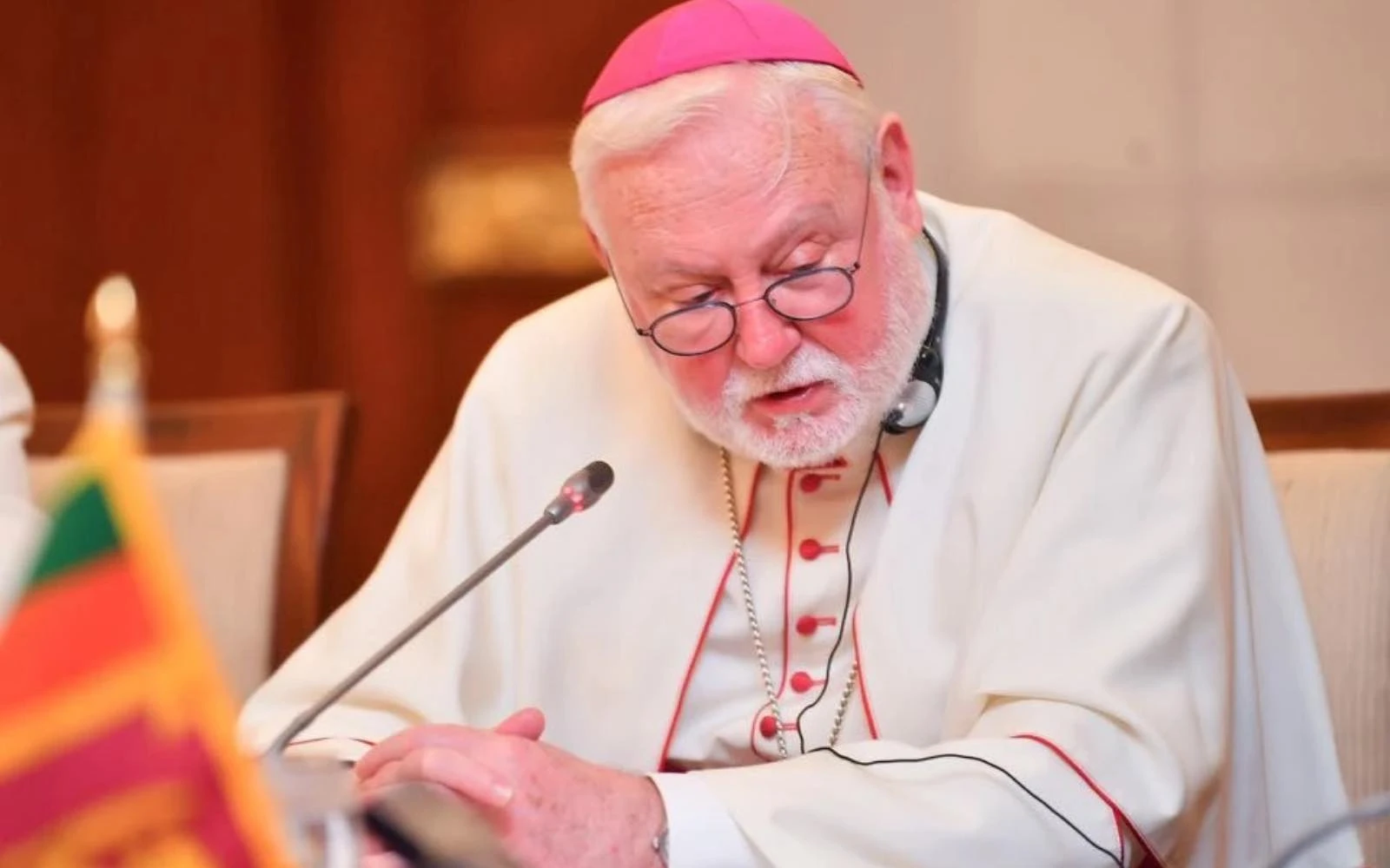 El arzobispo Paul Richard Gallagher, Secretario para las Relaciones con los Estados de la Santa Sede, habla en una conferencia de prensa el 4 de noviembre de 2025 en Colombo./Imagen referencial. / Crédito: Santosh Digal.
