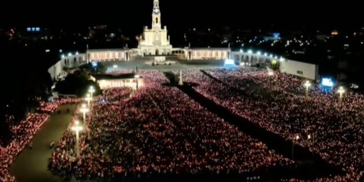 La noche del 12 de octubre, en el 108º aniversario de la última aparición de Nuestra Señora de Fátima y del Milagro del Sol, una multitud participó en el rezo del Santo Rosario y la procesión de las velas.