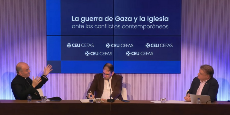 El obispo de Orihuela-Alicante, José Ignacio Munilla, y el filósofo Miguel Ángel Quintana Paz, director del ISSEP, protagonizaron un debate público poco frecuente entre un prelado y un intelectual laico. El encuentro, celebrado en el CEU y moderado por Isidro Catela, llevó por título «La guerra de Gaza y la Iglesia ante los conflictos contemporáneos» y abordó cuestiones de geopolítica, ética cristiana y comunicaciones de la Conferencia Episcopal Española. Aunque la conversación giró inicialmente en torno a Gaza, pronto derivó a temas de fondo: la misión de la Iglesia en contextos bélicos, la tentación ideológica, la jerarquía de prioridades morales y el papel mediático del episcopado.