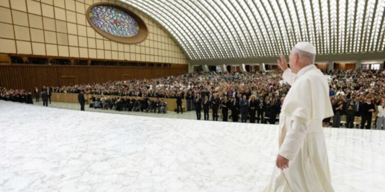 El Papa llega al aula Pablo VI a su cita con los jóvenes / Crédito: Vatican Media