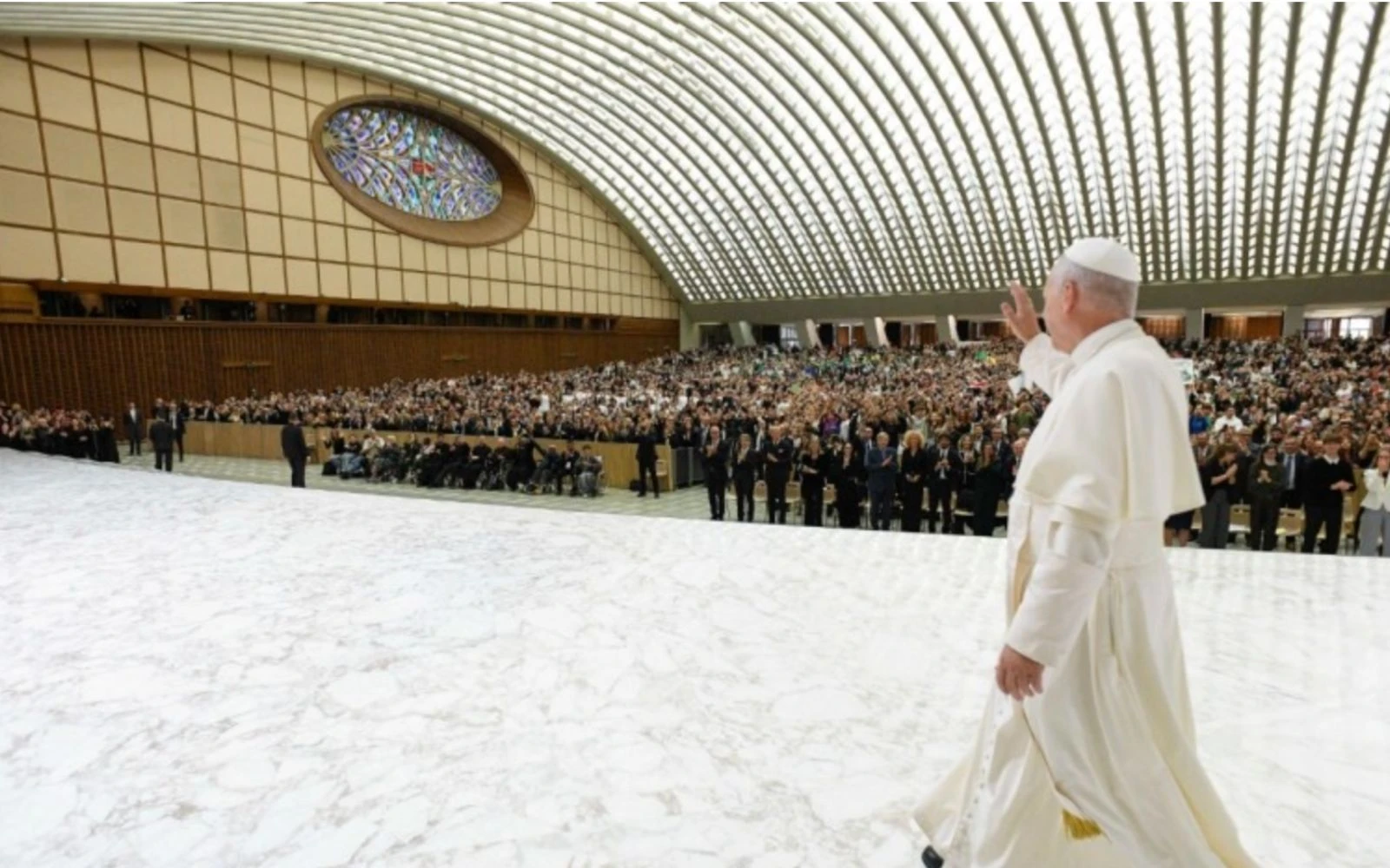 El Papa llega al aula Pablo VI a su cita con los jóvenes / Crédito: Vatican Media
