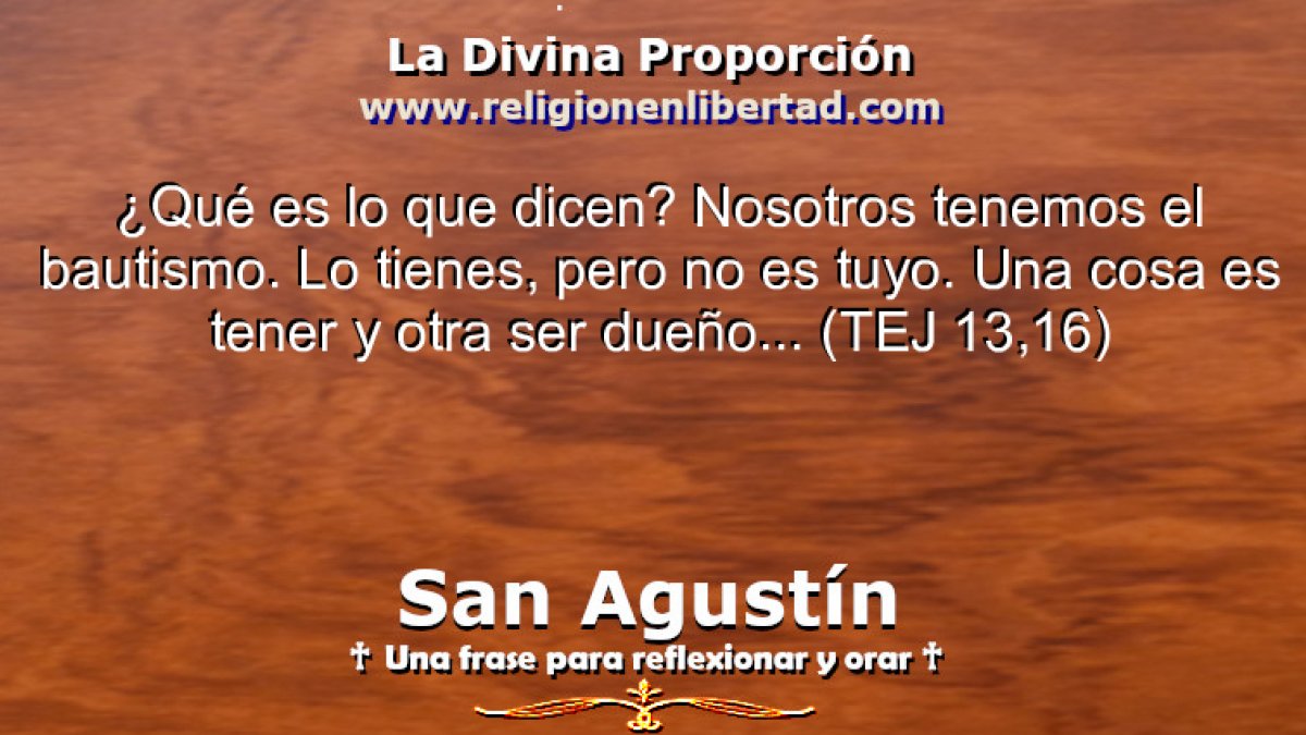 ¿Qué es lo que dicen? Nosotros tenemos el bautismo. Lo tienes, pero no es tuyo. Una cosa es tener y otra ser dueño…🔹San Agustín. Tratado del Evangelio de San Juan 13,16🔹