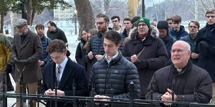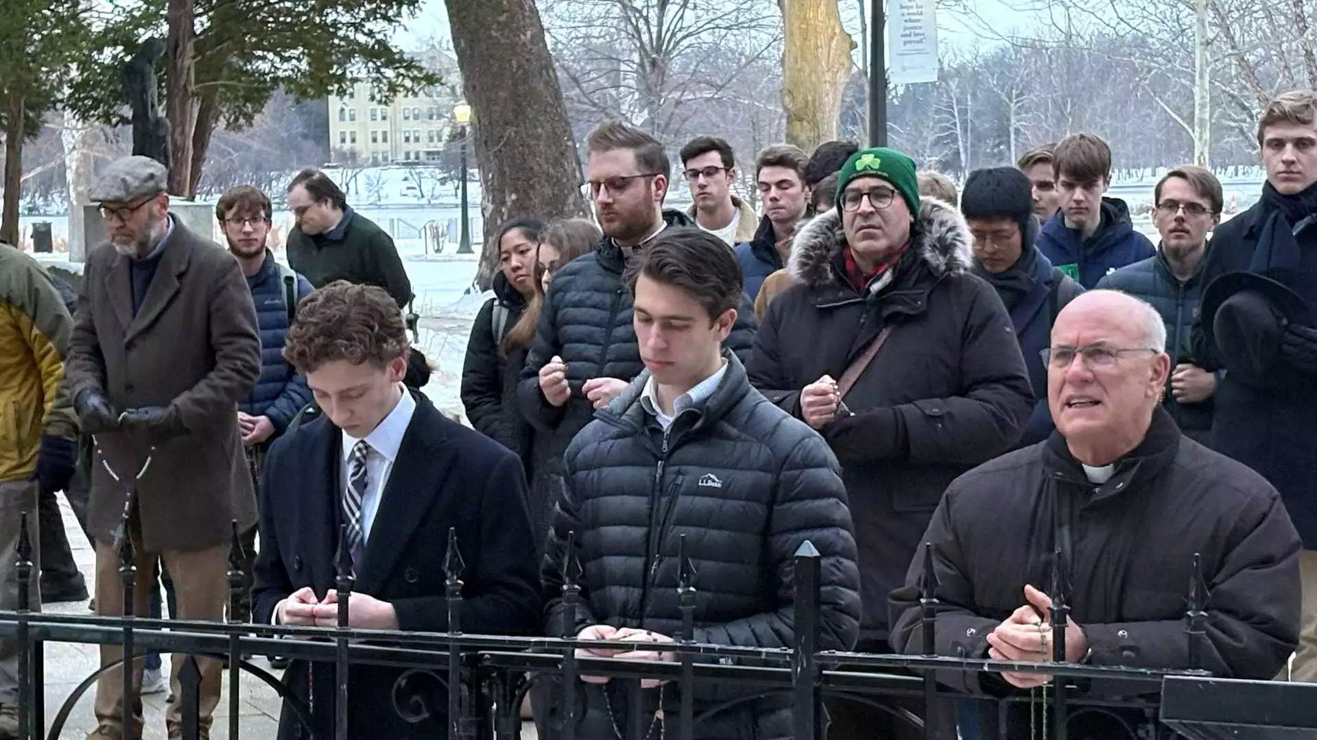 El prelado se arrodilló junto a los estudiantes Luke Woodyard y Gabriel Ortner, impulsores de la «Marcha sobre la Cúpula» convocada para este viernes. Ante el…