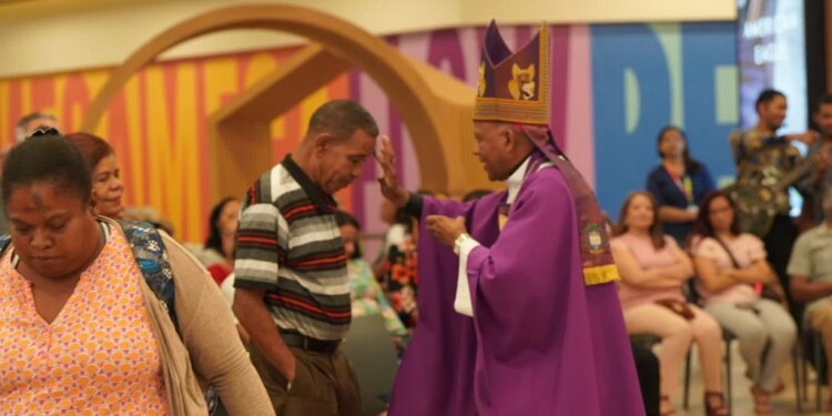 El Obispo de la Diócesis de Stella Maris, Mons. Manuel Antonio Ruiz, presidió la Misa de Miércoles de Ceniza en el centro comercial Plaza Megacentro, en Santo Domingo, capital de la República Dominicana.