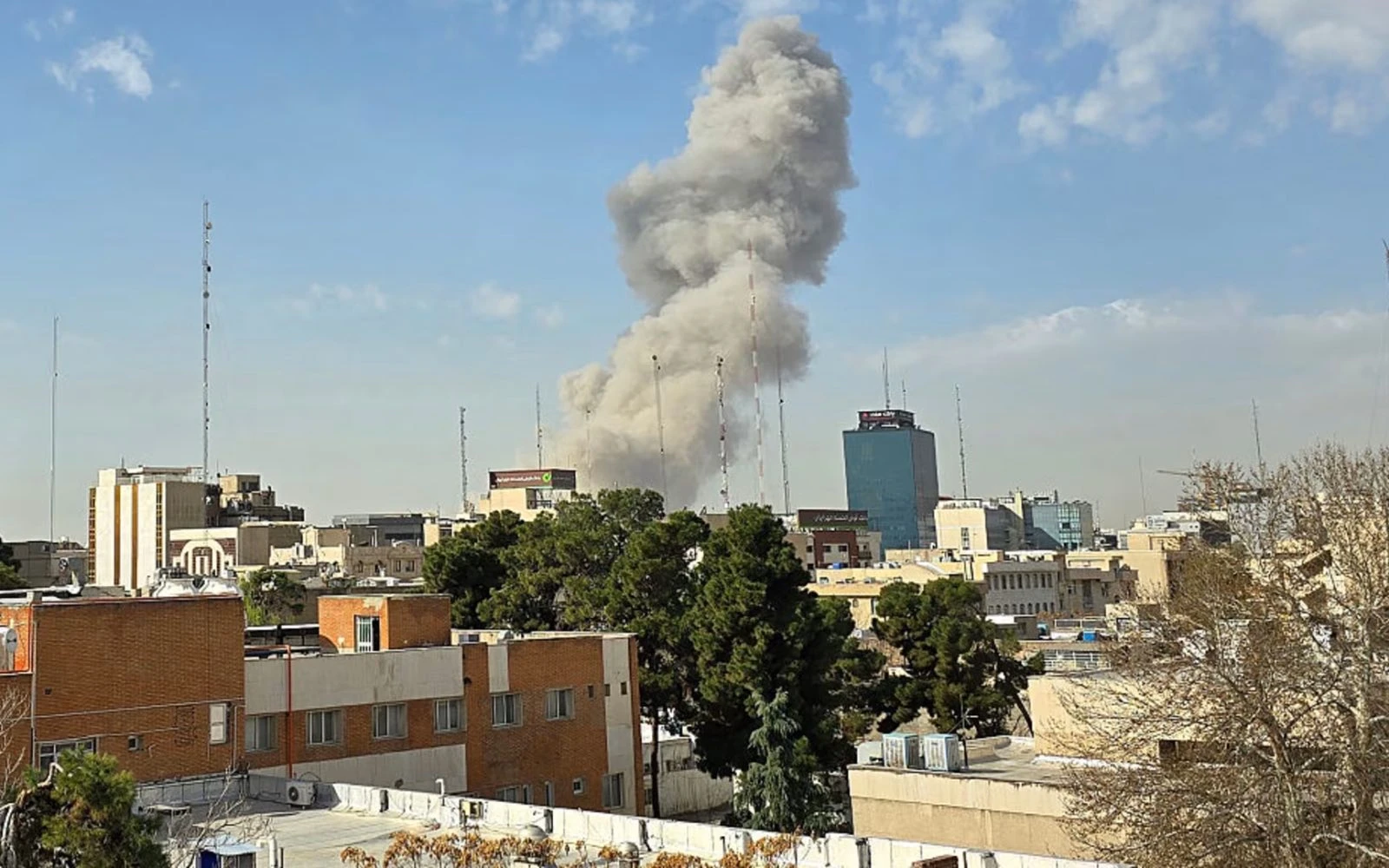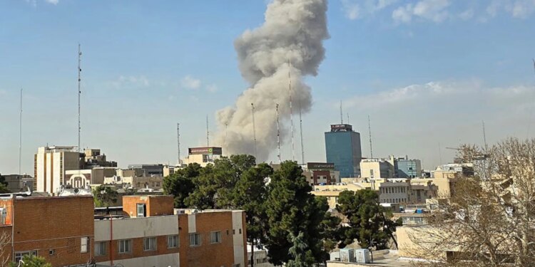 Una columna de humo se eleva tras una explosión el sábado 28 de febrero de 2026 en Teherán (Irán). Tras las explosiones en la capital iraní, la oficina del Ministro de Defensa israelí emitió un comunicado anunciando el lanzamiento de un ataque preventivo contra el país. / Crédito: Majid Saeedi/Getty Images.