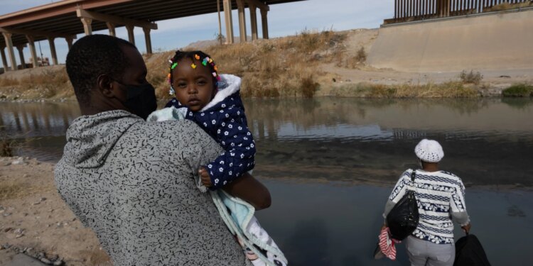 Un hombre y una mujer de Haití cruzaron el Río Grande, la frontera natural entre México y los Estados Unidos, con su hija en brazos para pedir asilo. / Crédito: David Peinado Romero – Shutterstock