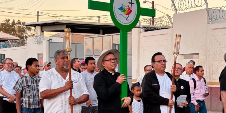 Peregrinación durante el «Encuentro Binacional: migrantes, peregrinos de esperanza en Cristo», realizado en San Luis Río Colorado, en el estado mexicano de Sonora. / Crédito: Cuenta de X de la Diócesis de San Bernardino.