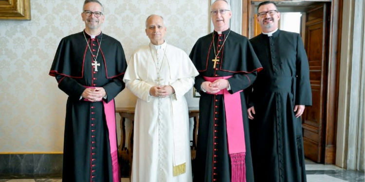(ZENIT Noticias / Ciudad del Vaticano, 15.11.2025).- La mañana del 15 de noviembre de 2025, el Santo Padre León XIV recibió en audiencia en el Palacio Apostólico a monseñor Pierre Goudreault, Obispo de Sainte-Anne-de-la-Pocatière y Presidente de la Conferencia Canadiense de Obispos Católicos. Lo acompañaron el Obispo Richard Smith, Arzobispo de Vancouver, y el Padre Jean Vézina, Secretario General de la misma Conferencia. Durante la audiencia, el Sumo Pontífice donó sesenta y dos objetos de las colecciones etnológicas de los Museos Vaticanos a la Conferencia Canadiense de Obispos Católicos.