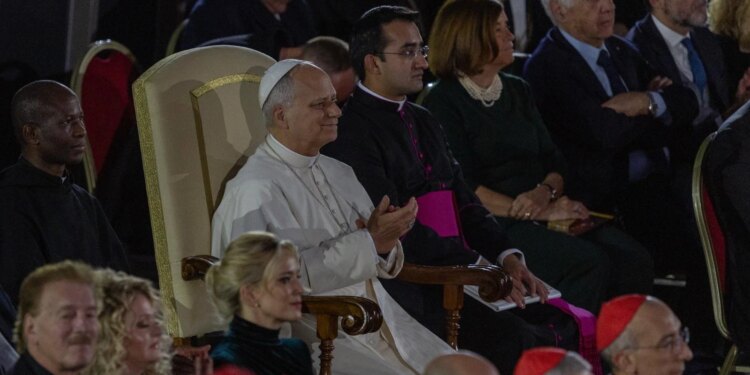 El Papa León XIV durante el Concierto con los Pobres, este sábado 6 de diciembre de 2025, en el que participó el cantante canadiense Michael Bublé. / Crédito: Daniel Ibáñez/EWTN News.