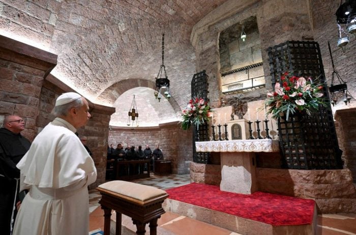 Redacción (20/11/2025 11:49, Gaudium Press) En esta mañana lluviosa, el Papa León XIV acudió a Asís y, antes de cualquier compromiso oficial, quiso dirigirse directamente a la tumba de San Francisco.