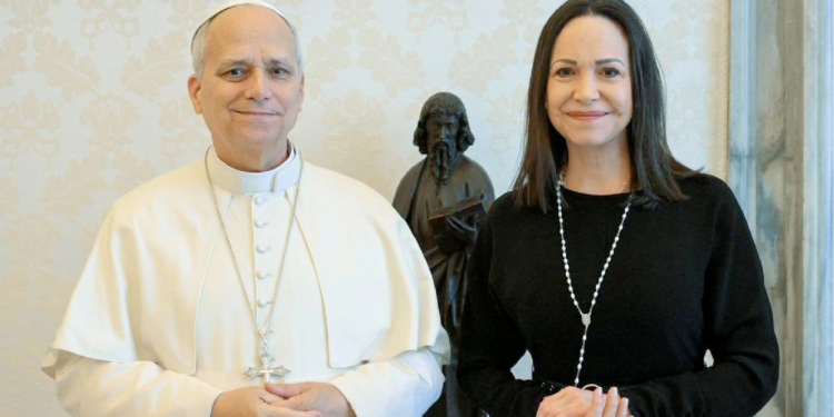 (ZENIT Noticias / Ciudad del Vaticano, 12.01.2026).- Al final de la mañana del lunes 12 de enero, el Papa León XIV recibió en audiencia privada en el Vaticano a la Premio Nobel de la Paz y líder de la oposición venezolana, María Corina Machado.