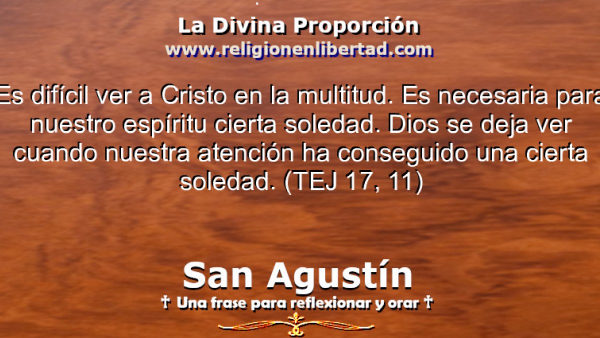 Es difícil ver a Cristo en la multitud. Es necesaria para nuestro espíritu cierta soledad. Dios se deja ver cuando nuestra atención ha conseguido una cierta soledad. 🔹San Agustín. Tratado sobre el Evangelio de San Juan 17, 11🔹