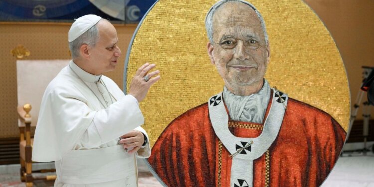 Este miércoles se presentó al Papa León XIV un mosaico con su retrato oficial como pontífice, que será colocado en la Basílica de San Pablo Extramuros, a petición del arcipreste de la basílica, el Cardenal James Michael Harvey.
