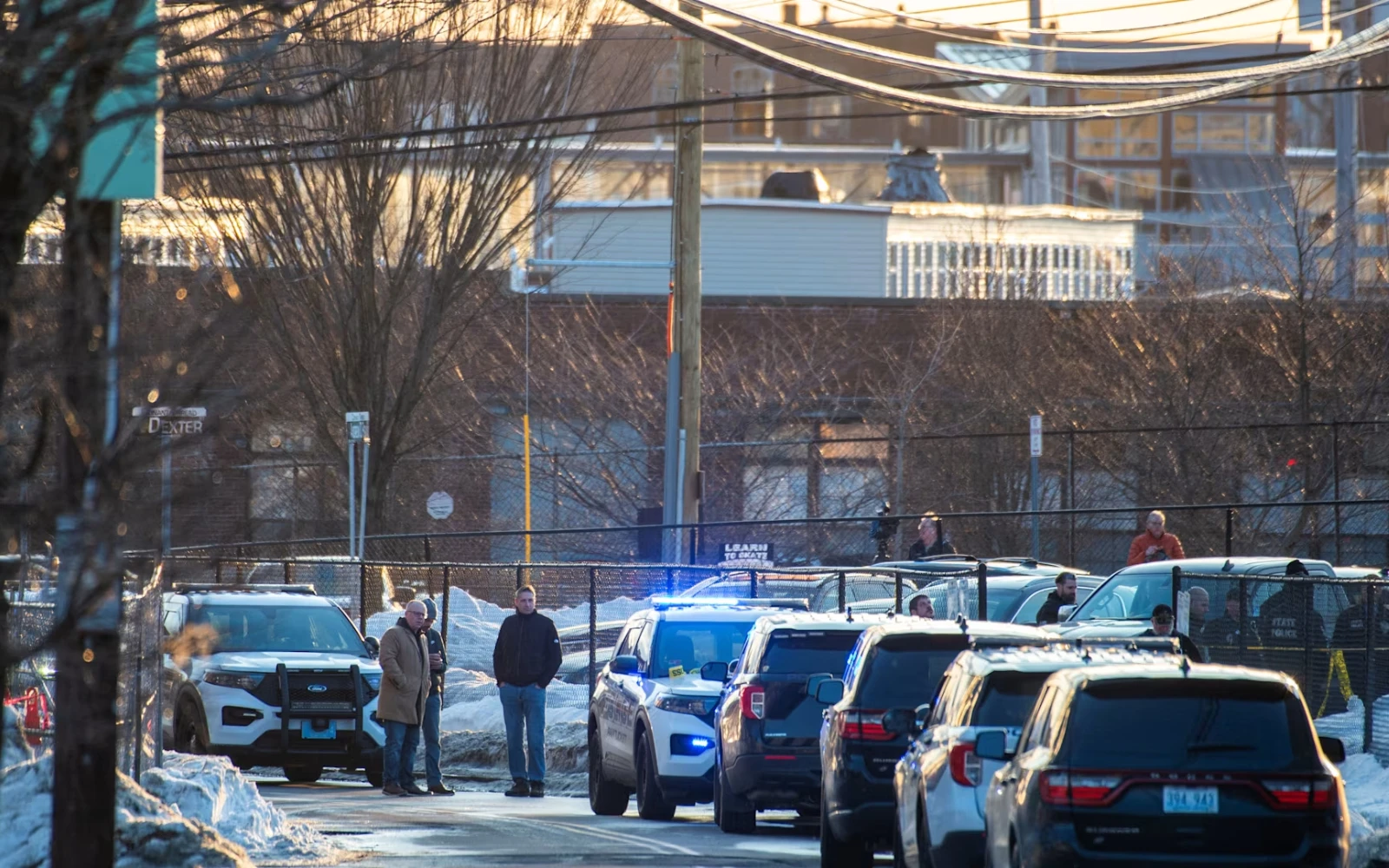 La policía se encuentra fuera del perímetro creado alrededor del estadio Dennis M. Lynch, donde se produjo un tiroteo en Pawtucket, Rhode Island, el lunes 16 de febrero de 2026. / Crédito: Joseph Prezioso/AFP vía Getty Images