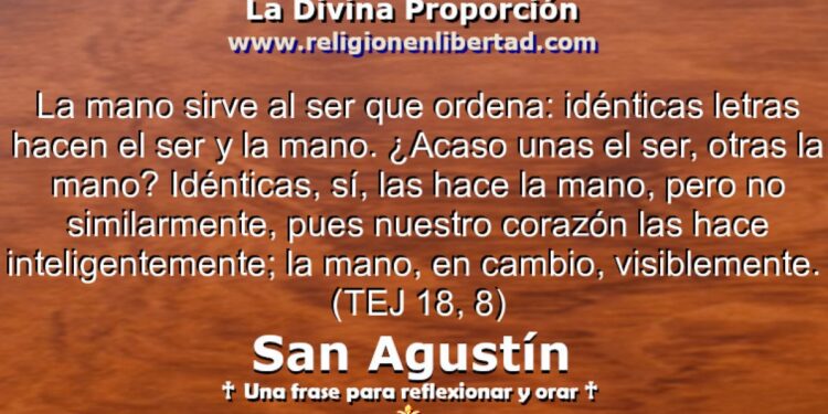 La mano sirve al ser que ordena: idénticas letras hacen el ser y la mano. ¿Acaso unas el ser, otras la mano? Idénticas, sí, las hace la mano, pero no similarmente, pues nuestro corazón las hace inteligentemente; la mano, en cambio, visiblemente. 🔹San Agustín. Tratado sobre el Evangelio de San Juan 18, 8🔹