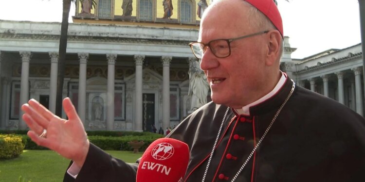 El Arzobispo de Nueva York, Cardenal Timothy Dolan, habla con EWTN News el viernes 25 de abril de 2025 en la Basílica de San Pablo Extramuros en Roma. / Crédito: Captura de pantalla/EWTN News.