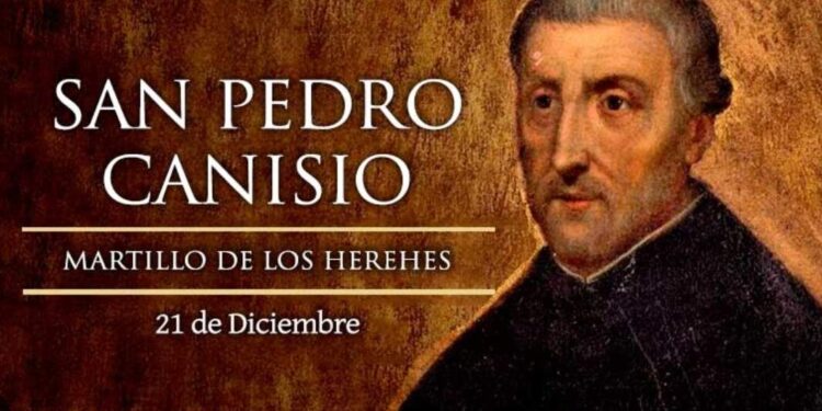San Pedro Canisio (1521-1597), presbítero de la Compañía de Jesús y doctor de la Iglesia. Nació en Nimeguen, Países Bajos, en el seno de una familia católica. Estudió teología en Colonia y Roma, y en 1543 ingresó en la Compañía de Jesús.