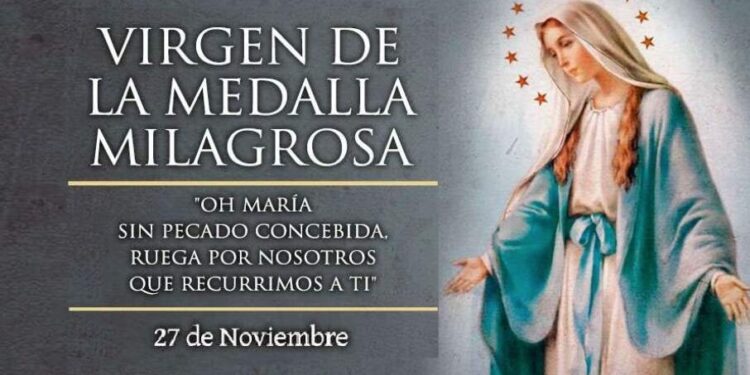 El 27 de Noviembre de 1830 la Virgen Santísima se apareció a Santa Catalina Labouré, humilde religiosa vicentina, y se le apareció de esta manera: La Virgen venía vestida de blanco. Junto a Ella, había un globo luciente sobre el cual estaba la cruz. Nuestra Señora abrió sus manos y de sus dedos fulgentes salieron rayos luminosos que descendieron hacia la tierra. María Santísima dijo entonces a Sor Catalina: