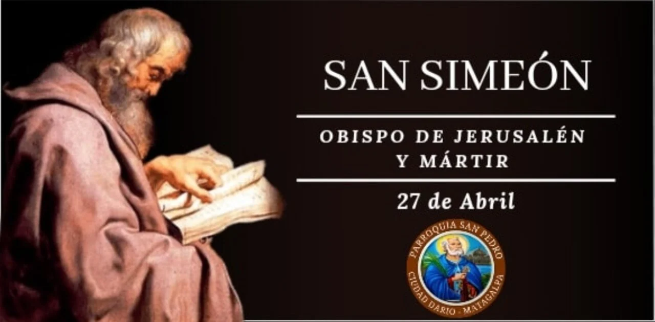La noticia que tenemos de San Simeón es contada en primer lugar por Egesipo, uno de los primeros escritores cristianos, probablemente de origen palestino, que llegó a Roma a mediados del siglo II, y luego también por Eusebio de Cesarea, que en su Historia Eclesiástica lo llama «segundo obispo» de Jerusalén, sucesor de Santiago de Alfeo, conocido como el Menor, asesinado en el año 63.