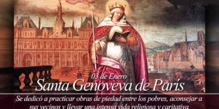 Vivió alrededor de 500 en París, Genoveva, hija de nobles galo-romanos, eligió la vida ascética de las vírgenes consagradas en lugar del matrimonio. El carisma de sanaciòn y la santa vida de esta mujer mística le procuraron una gran fama de santidad. Hoy es la patrona de la capital francesa.