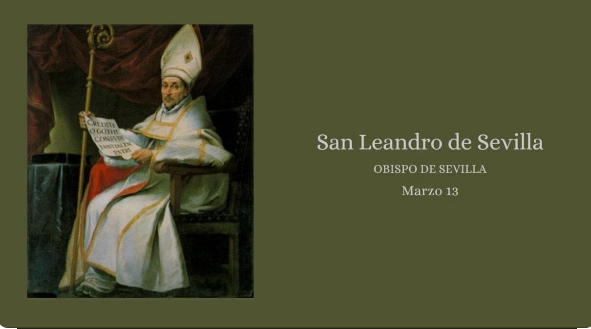 Nacido en Cartagena, hermano de Florentina, Fulgencio e Isidoro, todos ellos santos, s. Leandro, fue un monje benedictino que convirtió la dinastía real visigoda del arrianismo. Como obispo de Sevilla en 589 convocó el Concilio de Toledo para sancionar tal pasaje histórico. Murió en el año 600.