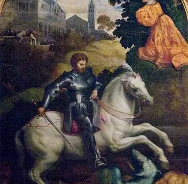 De hecho, se sabe muy poco sobre la vida de este santo guerrero. El único elemento histórico que tenemos sobre la vida del militar es su martirio, que probablemente tuvo lugar en Nicomedia. La Leyenda Dorada narra que el martirio de San Jorge tuvo lugar por orden de Daciano. En Oriente se le conoce como “megalomártir”, es decir, “gran mártir”. También es reconocido como modelo de virgen…