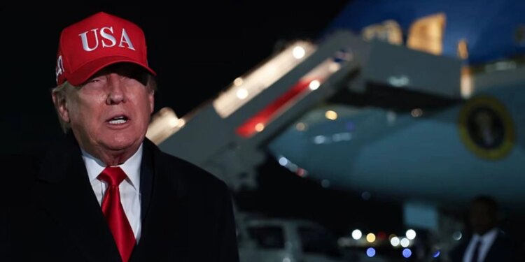 El presidente estadounidense Donald Trump habla con los medios de comunicación tras desembarcar del Air Force One el 12 de abril de 2026 en la Base Conjunta Andrews, Maryland. / Crédito: Tasos Katopodis/Getty Images